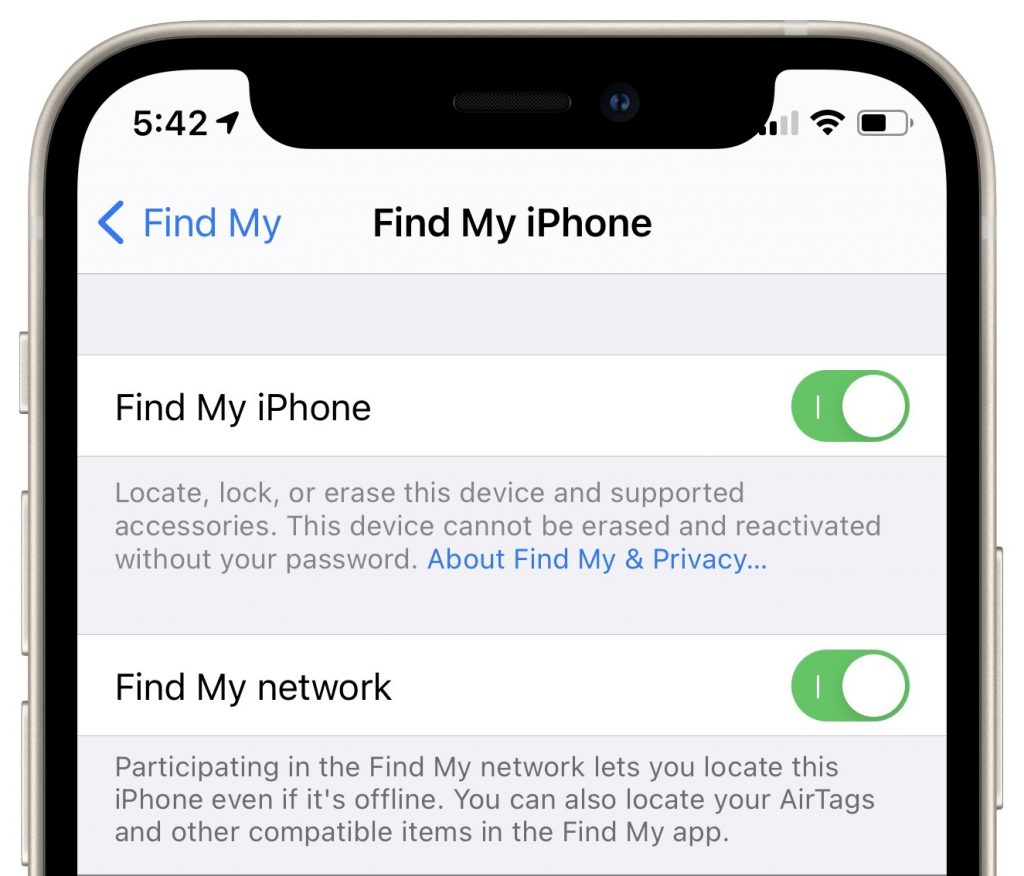 (A quick aside: the Find My iPhone option in that screen is necessary to locate your iPhone if it’s lost or stolen. It also enables Activation Lock, which prevents a thief from erasing and reactivating your iPhone unless they can find your Apple ID password. Always leave Find My iPhone enabled. The Find My network can also help locate iPhones, iPads, Macs, and Apple Watches that are offline and can’t report their location to Find My on their own.)