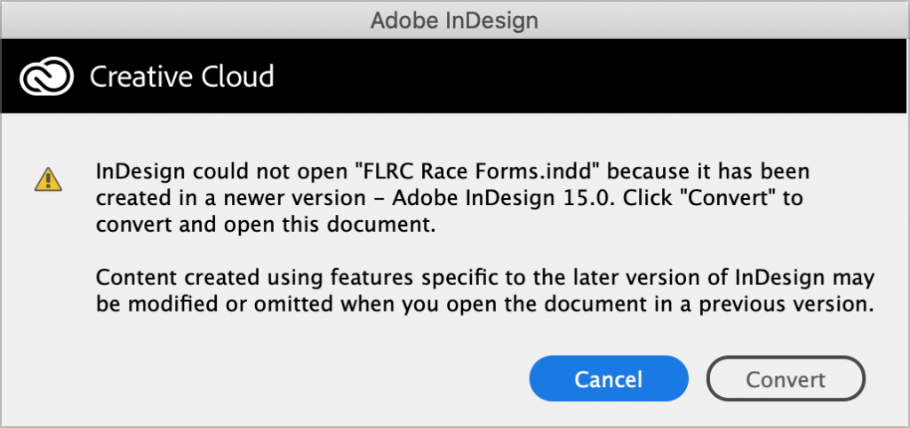 Here’s the solution to a problem that clients have run into on occasion. In a workgroup that relies on Adobe Creative Cloud apps, one person might upgrade to the latest versions of Photoshop, InDesign, and Illustrator, whereas others don’t. Suddenly, if that person opens and re-saves a file in the new version, those using the old version may not be able to open it, or certain aspects of the file may disappear.