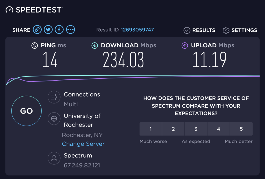 When you notice such problems, you can perform a simple test that may shed some light on the situation. First, make sure to stop any audio or video streaming or large downloads. Then go to speedtest.net and click the Go button. Speedtest will run some tests to come up with three numbers: