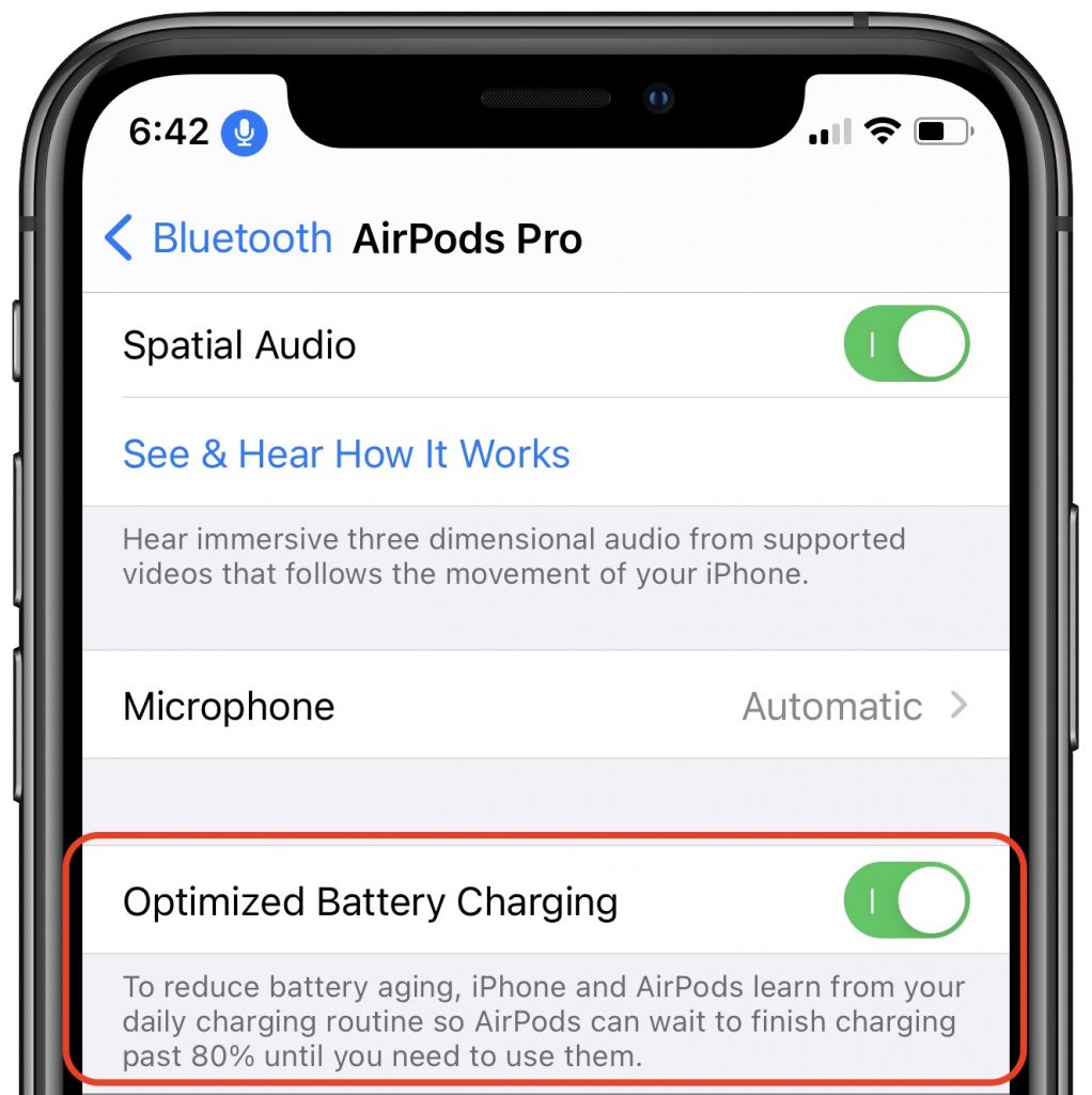 Apple says that it has now tweaked AirPods Pro charging to increase the lifespan of the battery. It does this by delaying charging past 80% to reduce the amount of time the batteries stay fully charged. Apple previously did this with the iPhone and Apple Watch. Given that there’s no way to replace the battery in the AirPods Pro, anything that extends their useful life is welcome. Sadly, this feature isn’t available for the standard AirPods. If you find that the feature regularly prevents your AirPods Pro from having a full charge, you can turn it off in Settings > Bluetooth (make sure the AirPods Pro case is open or they’re in your ears). Tap the i button next to your AirPods Pro and turn off Optimized Battery Charging.