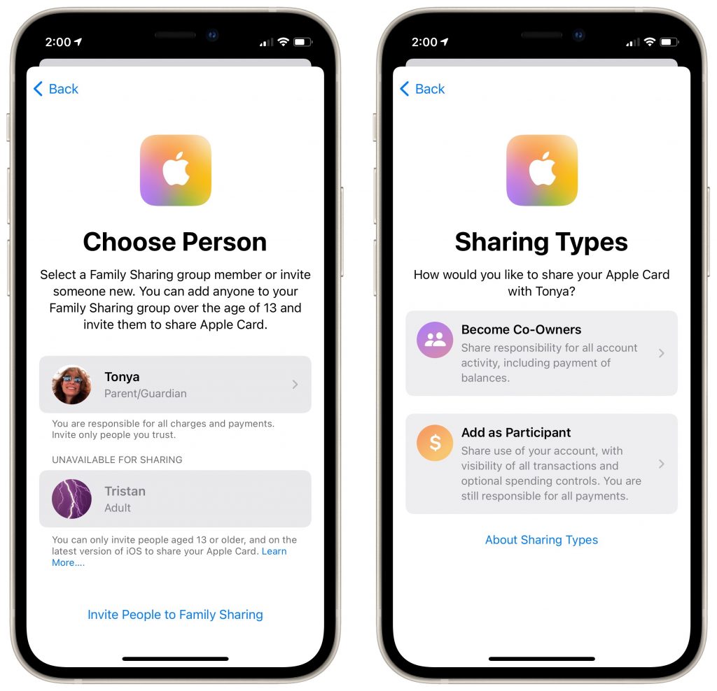 Apple did a good job rethinking some aspects of credit card use with the Apple Card, but one omission was the inability to share it with other family members. With the new Apple Card Family, once everyone has upgraded to iOS 14.6, you can add members of your Family Sharing group to your Apple Card account as either Co-Owners or Participants. Co-Owners can merge their credit lines, manage the account together, and build credit as equals. You can also invite children over 13 and young adults as Participants. For their accounts, you can set spending limits and receive real-time notifications. Participants over 18 can build their own credit, something that can be difficult for young people. To get started, go to the Wallet app on your iPhone, open the Apple Card, tap the ••• button, tap Share My Card, follow any prompts, for the person you want to share with, and select either Co-Owner or Participant.