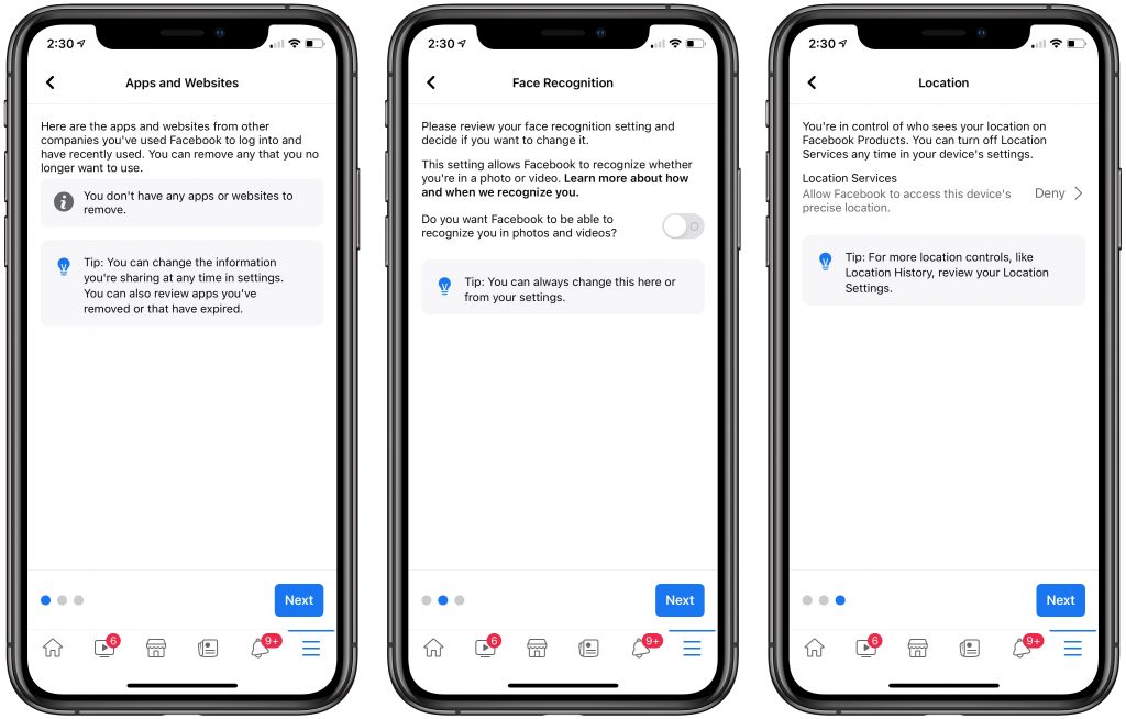 Facebook’s Privacy Checkup walks you through many of Facebook’s privacy settings: