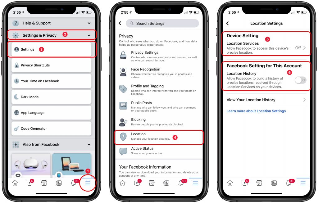 Also, in the iPhone Facebook app, tap the hamburger button again and then Settings & Privacy > Settings > Location, and turn off all the settings. Facebook doesn’t need to know everywhere you go.