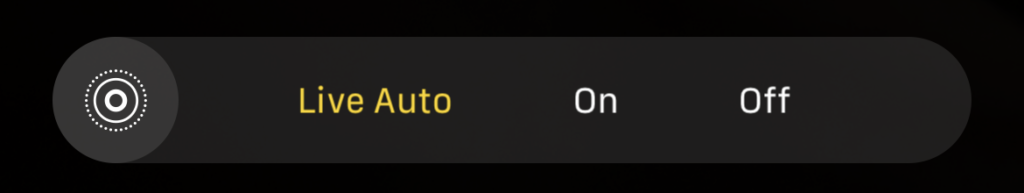 - Live Photo: Live Photo records 1.5 seconds of video before and after you take a photo, animating the photo slightly. Use this control to set whether the camera takes Live Photos all the time, none of the time, or automatically when it thinks it’s warranted (which is a lot).