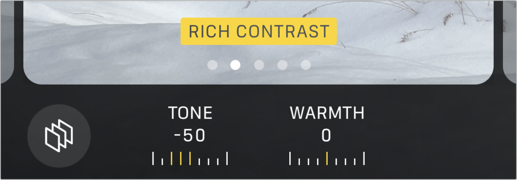 - Photographic Styles: These custom settings—Rich Contrast, Vibrant, Warm, and Cool—let you apply that distinct look to all your photos automatically. Or stick with Standard and apply the look you want afterward by editing.