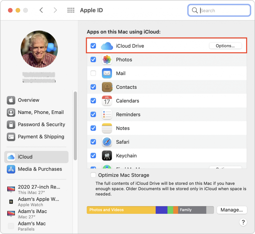 First off, make sure iCloud Drive is selected in System Preferences > Apple ID > iCloud. If you have plenty of storage, leave Optimize Mac Storage unchecked. It’s worthwhile only if your Mac’s internal drive is nearly full.