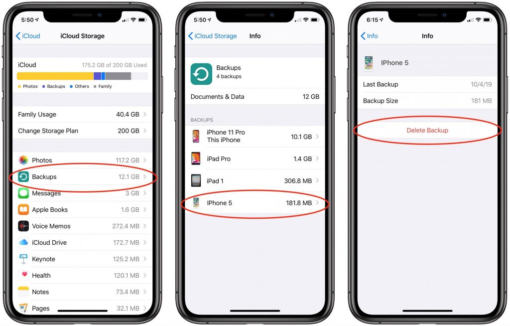 The biggest win comes from deleting iCloud device backups for devices you no longer use. It’s common for these to stick around, so if you recently upgraded from an iPhone X to an iPhone 11 Pro, the iPhone X backup is probably still consuming gigabytes.