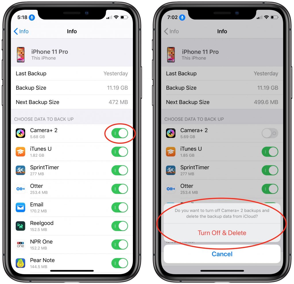 To find such apps, navigate to Settings > Your Name > iCloud > Manage Storage > Backups and tap the name of the device you’re on. That screen shows which apps consume the most space in your backup. Tap the toggle switch next to an app to stop backing it up and delete its data from your backup.