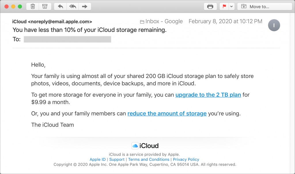 That said, you don’t want to run out of storage space. Email to your iCloud email address will be rejected, photos won’t upload from your iPhone, and app data will fail to sync. Happily, Apple alerts you when you’re running low on space, before things get bad.