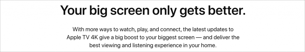 Apple doesn’t say much about tvOS 14. This new operating system version will install itself at some point after release. It features a new Home app for those who do HomeKit-based automations, can display video from HomeKit video doorbells while you’re watching TV, extends its Picture in Picture capabilities, lets you use two pairs of AirPods to listen simultaneously, and supports more gaming controllers. It also reportedly provides better 4K video support and lets you stream 4K video from an iPhone. It will work on the fourth-generation Apple TV (also known as the Apple TV HD) and the Apple TV 4K.