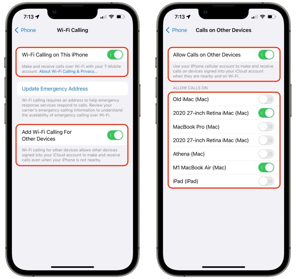 - Still on that screen, turn on each device you want to use with Wi-Fi Calling. (Each device must be signed in to the same Apple ID.)