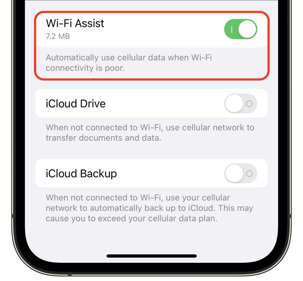 The only downside to Wi-Fi Assist is that you could end up using more cellular data than you expect. That’s likely a problem only if your plan provides extremely limited cellular data or charges significant amounts for additional usage, as might be the case with a pre-paid SIM while traveling. To ensure that doesn’t happen, go to Settings > Cellular, scroll all the way to the bottom, and turn Wi-Fi Assist off. (That screen also tells you how much cellular data Wi-Fi Assist has used; even when it’s on, it’s unlikely to consume much.)