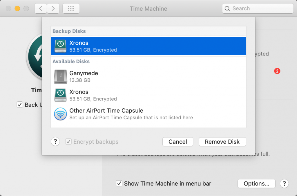 Getting a new, larger backup drive and starting over with it is easier and more sensible, though more expensive. Once you’ve connected the new drive, just open the Time Machine preferences, click Select Disk, and select the new drive.