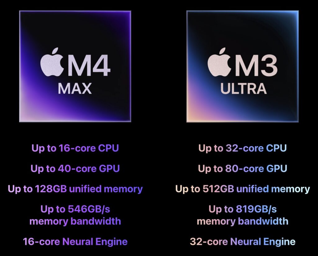 In the first update to the Mac Studio since 2023, Apple has refreshed its professional powerhouse with new chip options and support for speedy Thunderbolt 5 peripherals. Previously, the Mac Studio was powered by the M2 Max and M2 Ultra; Apple has now replaced them with the M4 Max, which debuted last year in the MacBook Pro line, and the new M3 Ultra, which melds two M3 Max chips for the ultimate performance. According to Apple, the M3 Ultra version of the Mac Studio ($3,999) is up to 2.6 times faster than the initial M1 Ultra version and nearly twice as fast as the M4 Max configuration ($1,999) for workloads that take advantage of high CPU and GPU core counts. The M3 Ultra Mac Studio starts with 96 GB of unified memory and can be configured with up to 512 GB, plus up to 16 TB of storage, both more than ever before. If you need the fastest Mac possible, look no further.