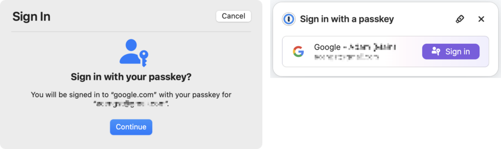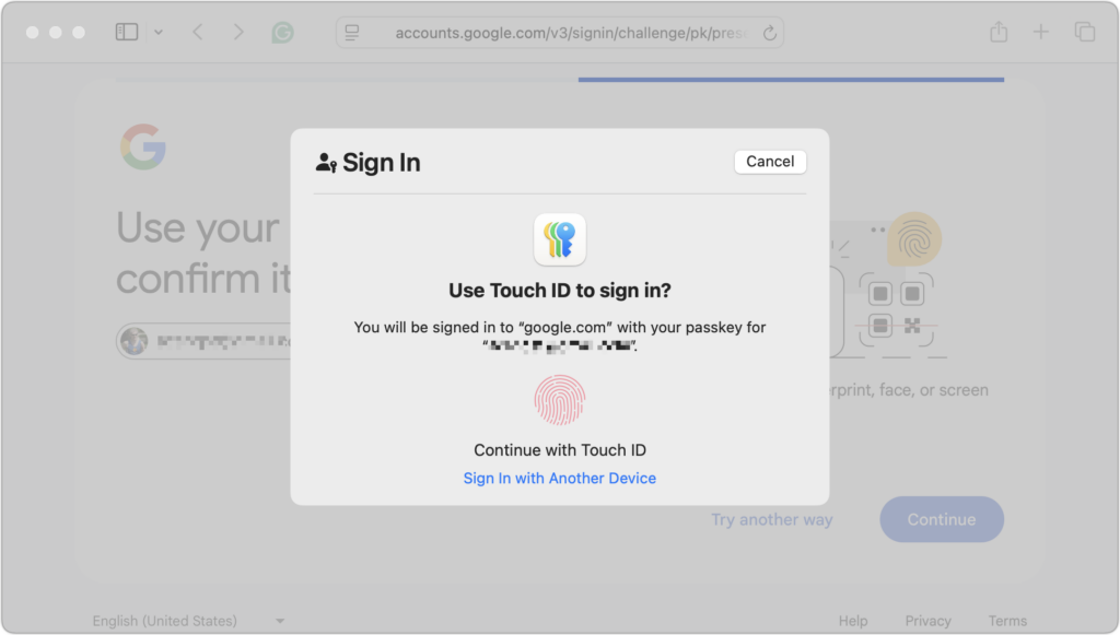 Similarly, using a passkey to sign in is trivially simple. You navigate to the website’s login page, enter your username, choose the passkey sign-in option if necessary, and then authenticate.